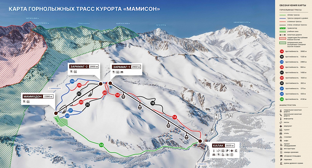 Молодой североосетинский горнолыжный курорт. Расстояние от Владикавказа составляет 100 километров. 10 трасс общей длиной 19 км. Перепад высот 970 метров.
